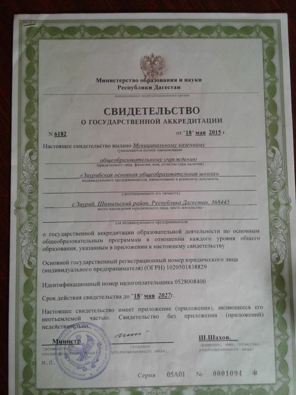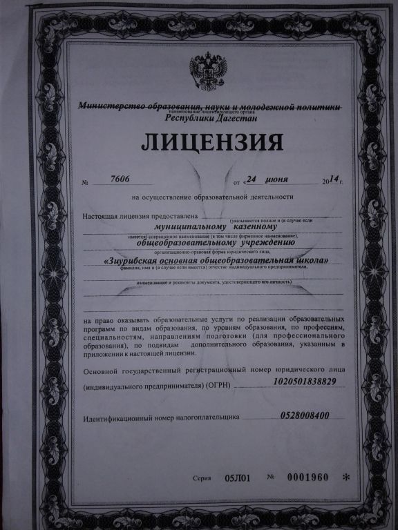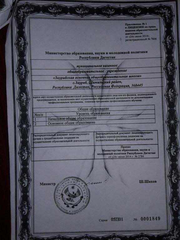 Полное наименование образовательной организации* Муниципальное казенное образовательное учреждение "Зиурибская основная общеобразовательная школа"